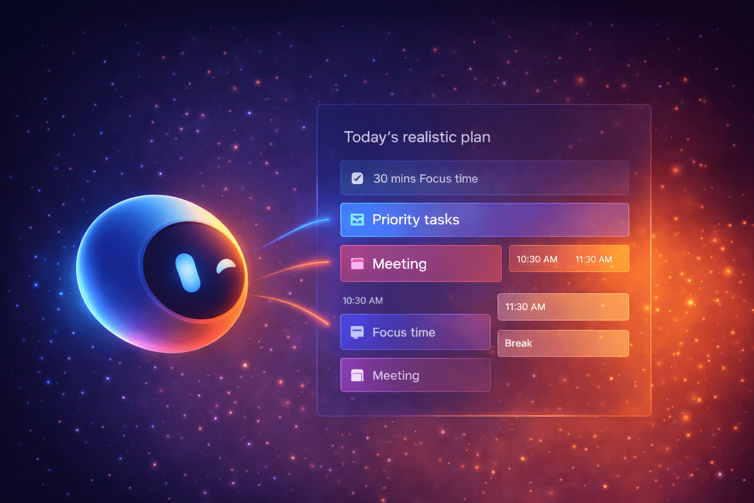 “Plan my day.” “Top 3 priorities this week?” “I have 2 hours—what should I do?”