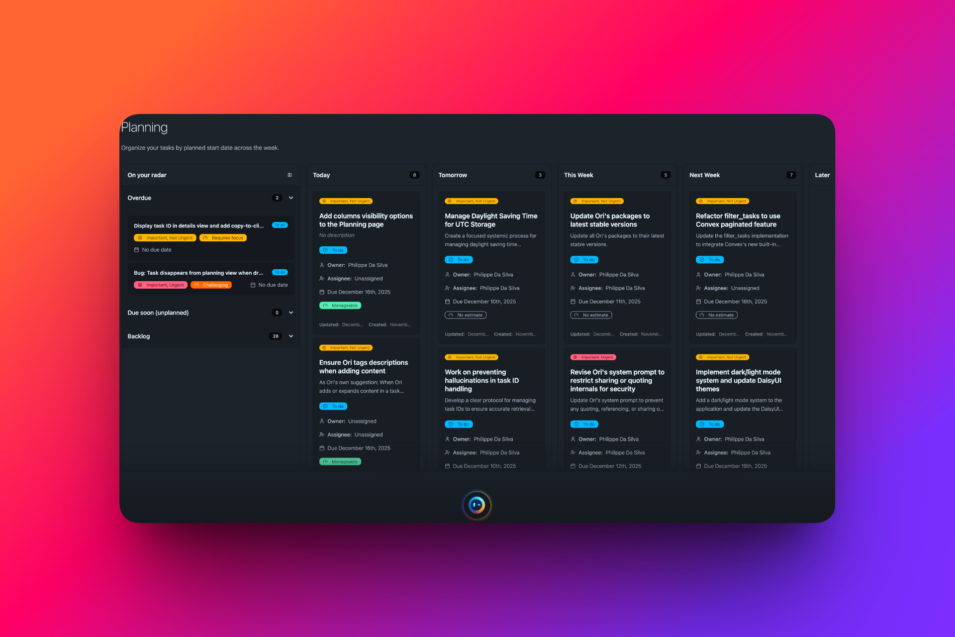 I am Philippe Da Silva and I have spent more than 20 years leading complex digital projects, coordinating teams and keeping many priorities moving at the same time. I started building Ori because I was tired of juggling tasks, emails and responsibilities across too many tools, and I wanted a calm, trustworthy assistant that helps me think, decide and stay on top of what matters without taking away my agency or adding yet another system to look after.
